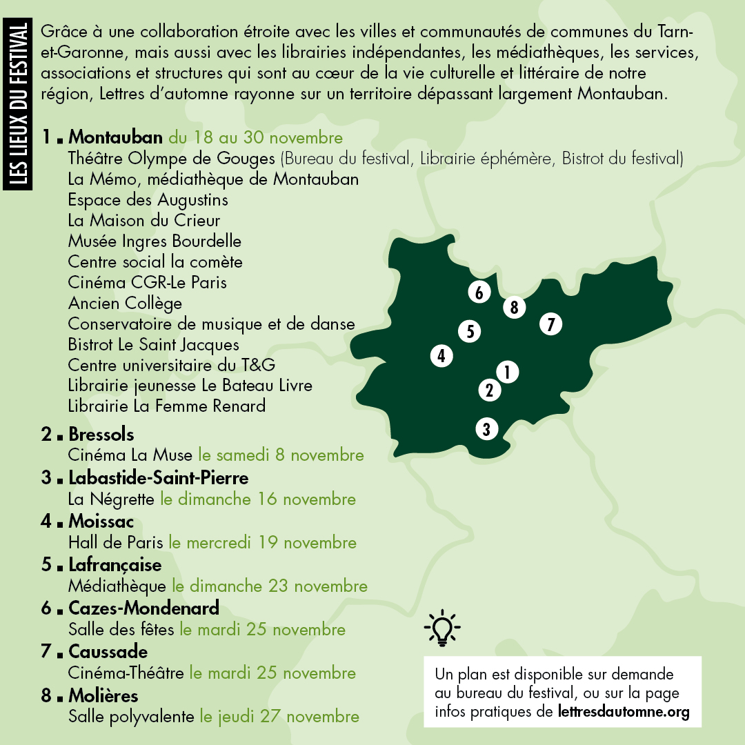 Lettres d’automne s’engage dans une démarche en faveur de l’éco-responsabilité, qui se traduit notamment par une réflexion pour réduire l’impact des déplacements, par la mise en place d’actions pour tendre vers une réduction des déchets et une restauration plus durable.